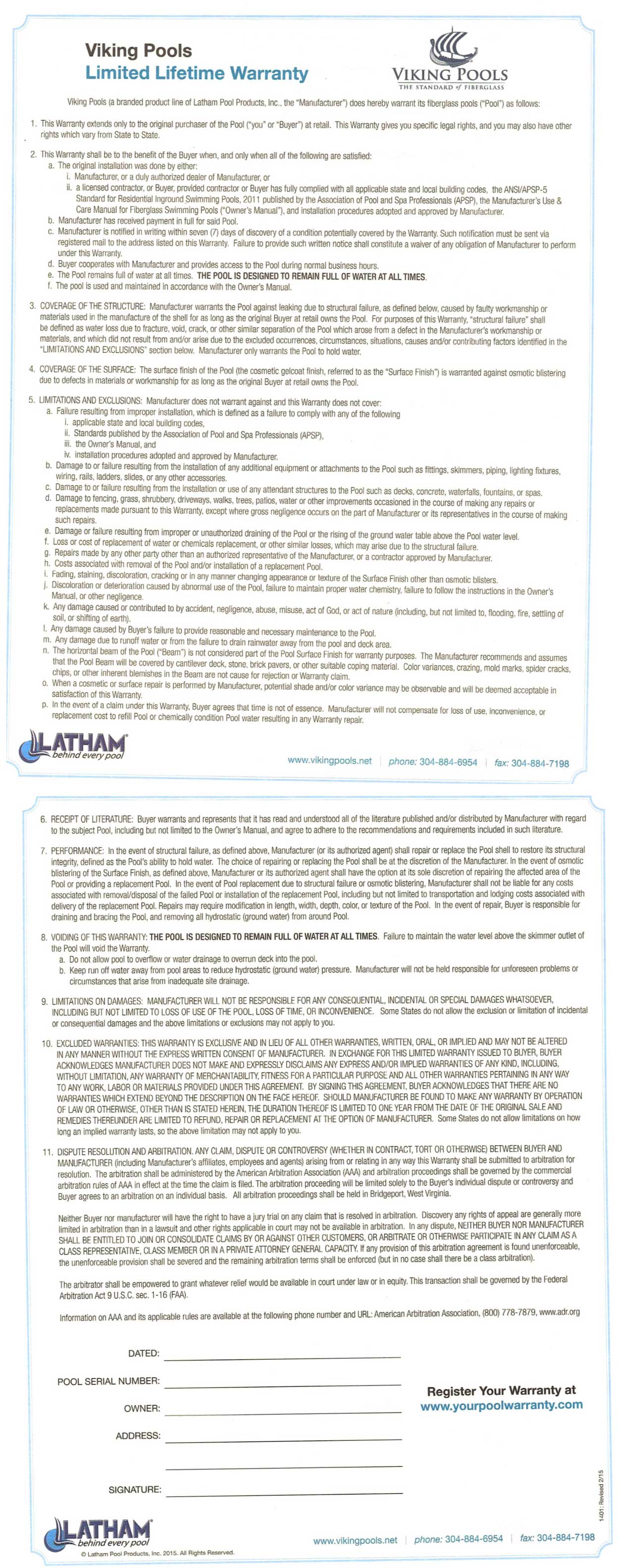 Viking Pools Lifetime Warranty