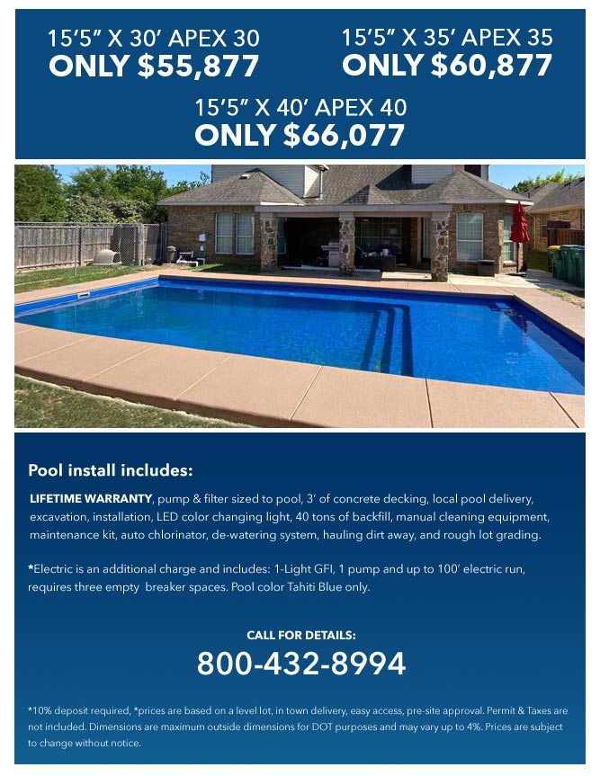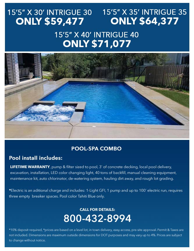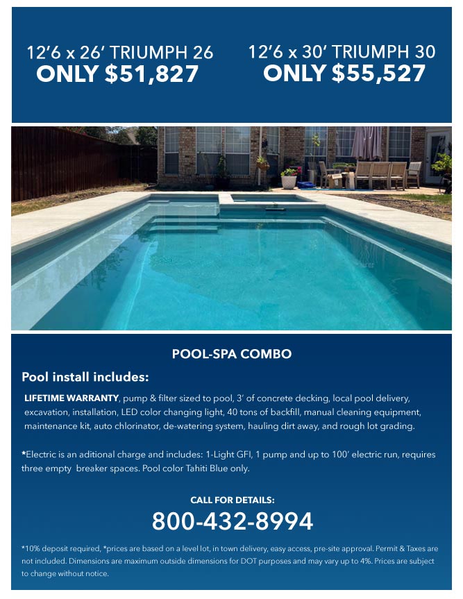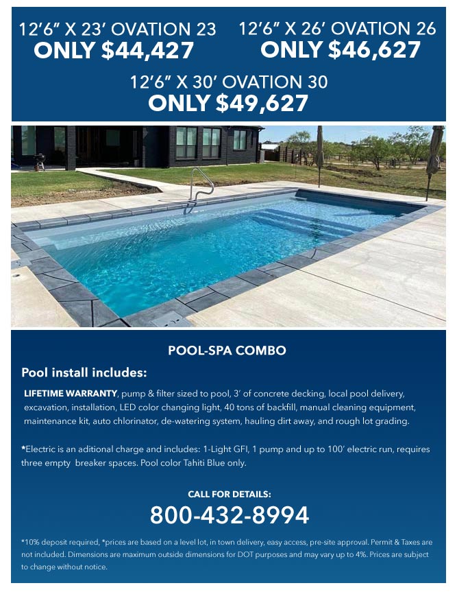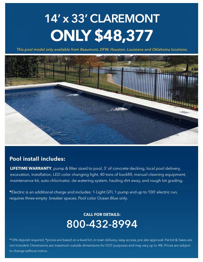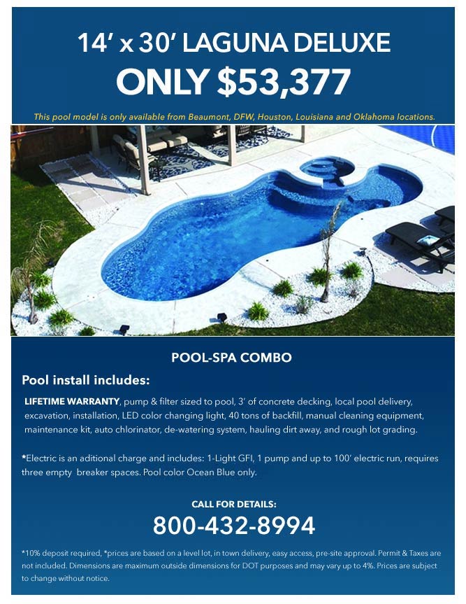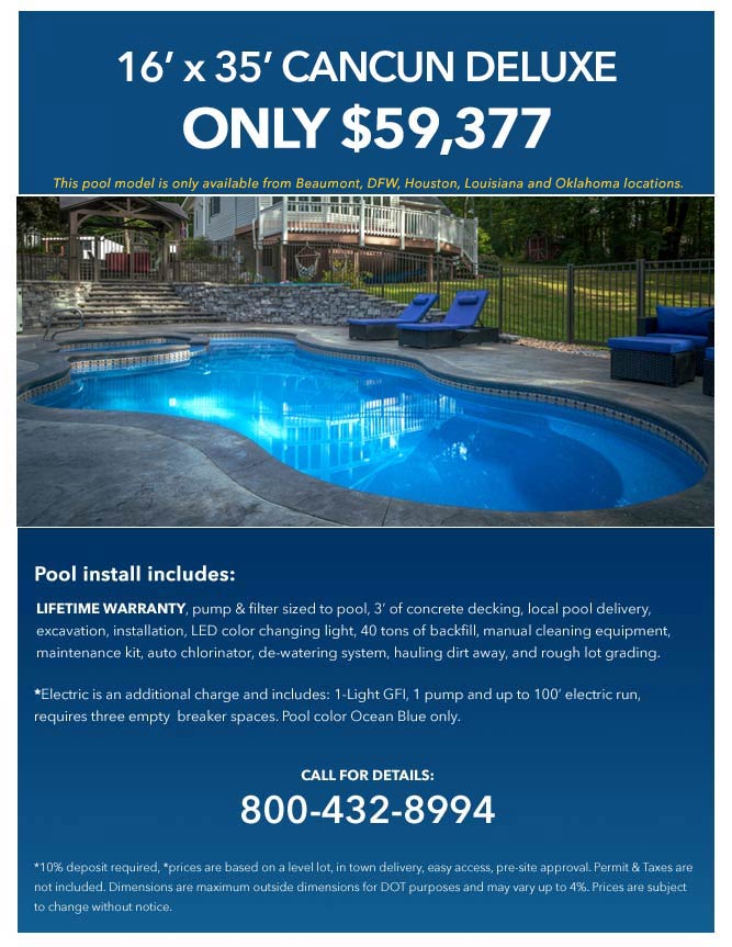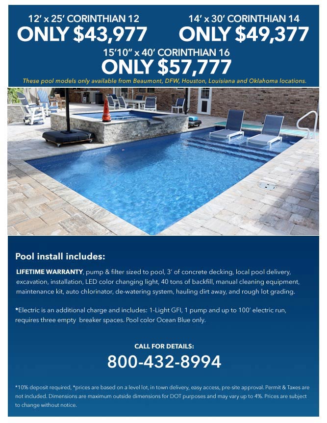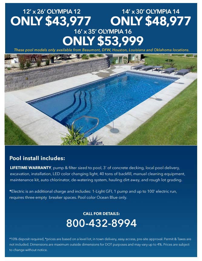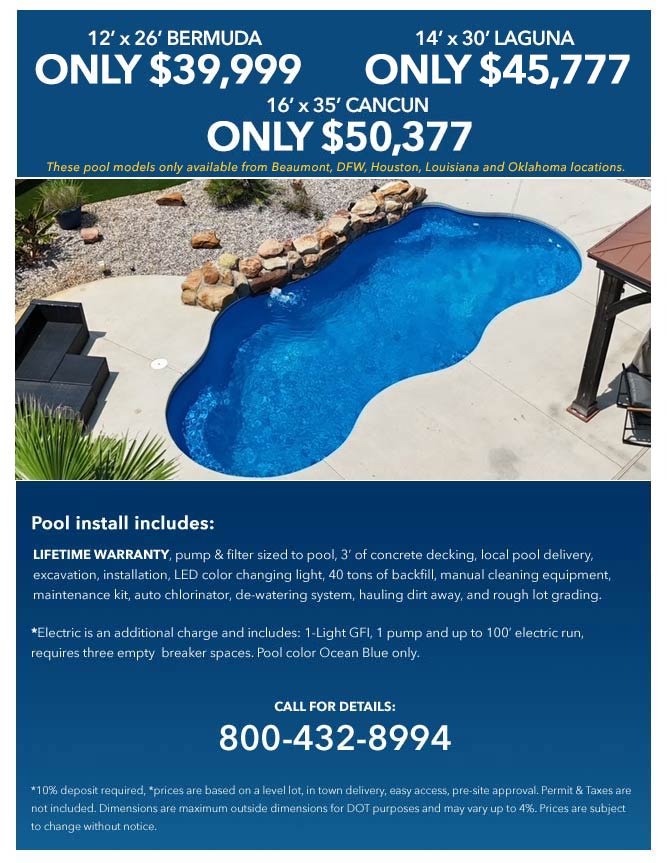 Note: Latham Pool models only available at Beaumont, DFW, Houston, Louisiana and Oklahoma locations.