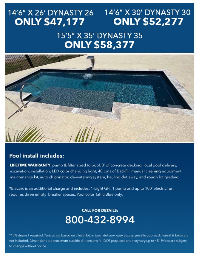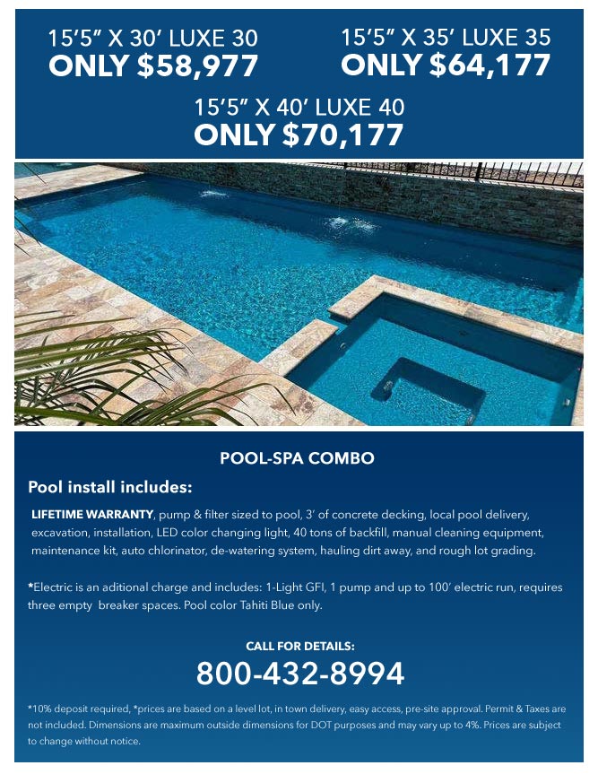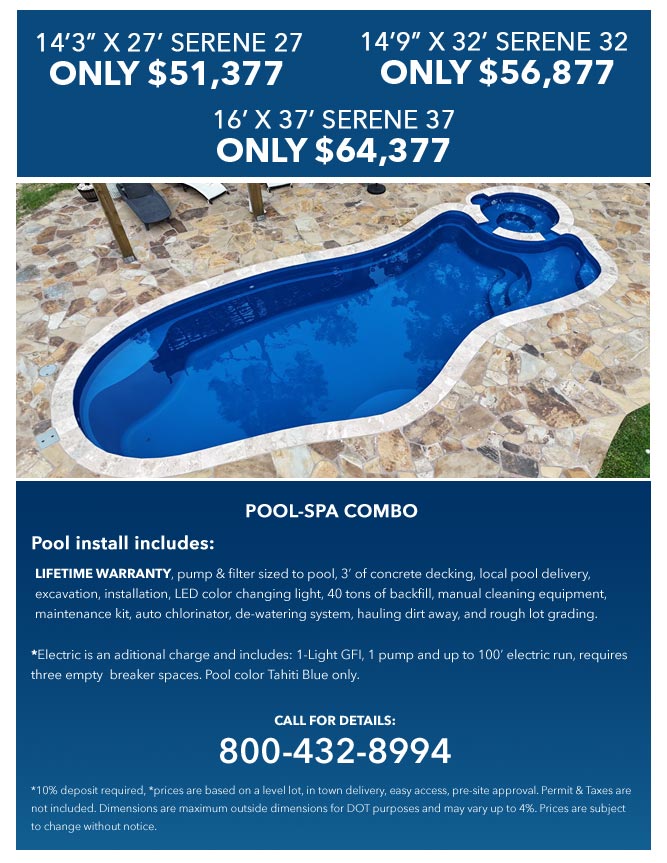 Special Savings on Fiberglass Pools & Spas from AquaPools. Choose the Special That Is Right for You!